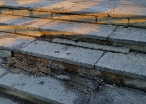 Balesetveszélyes kőburkolat a Baross utca