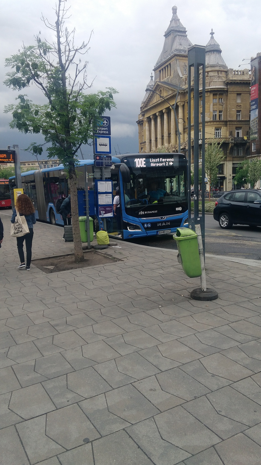 Széttört betonlapok, egy napernyő csonkja és egy ideiglenesen lerakott szemetes rondítja a városképet, és hoz szégyent a budapestiekre a 100E busz Városháza parkban lévő felszállóhelyén.