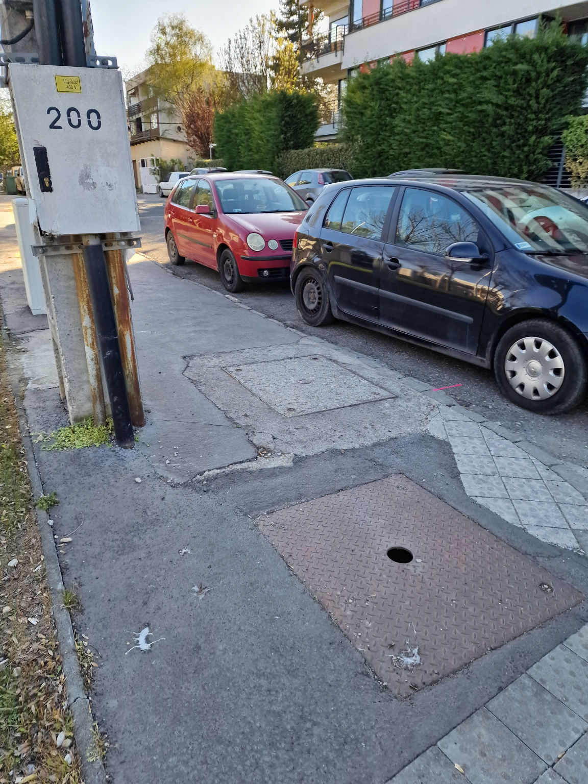 „Még mindig megvan az öklömnyi lyuk a vasból készült aknafedélen. Egy kucscsomó, gyerek láb, felnőtt láb feje, telefon továbbra is eltűnhet benne. Ha valaki felbukik benne és az aszfaltba beüti a fejét, életveszélyes sérülést szerezhet. 2025.01.19-én készítettem.”