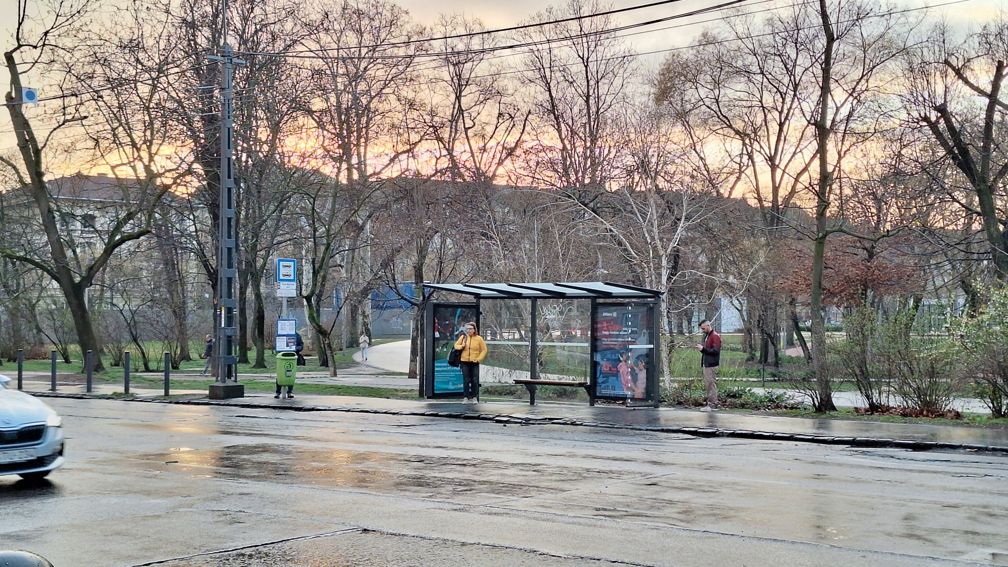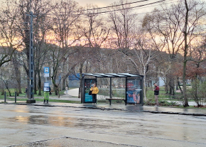 Ennél a megállónál 3 iskola gyermekei várnak a trolira, és a szemben levő megállóval ellentétben itt hatalmas hely lenne egy fedett utasvárónak és pad(ok)nak is.