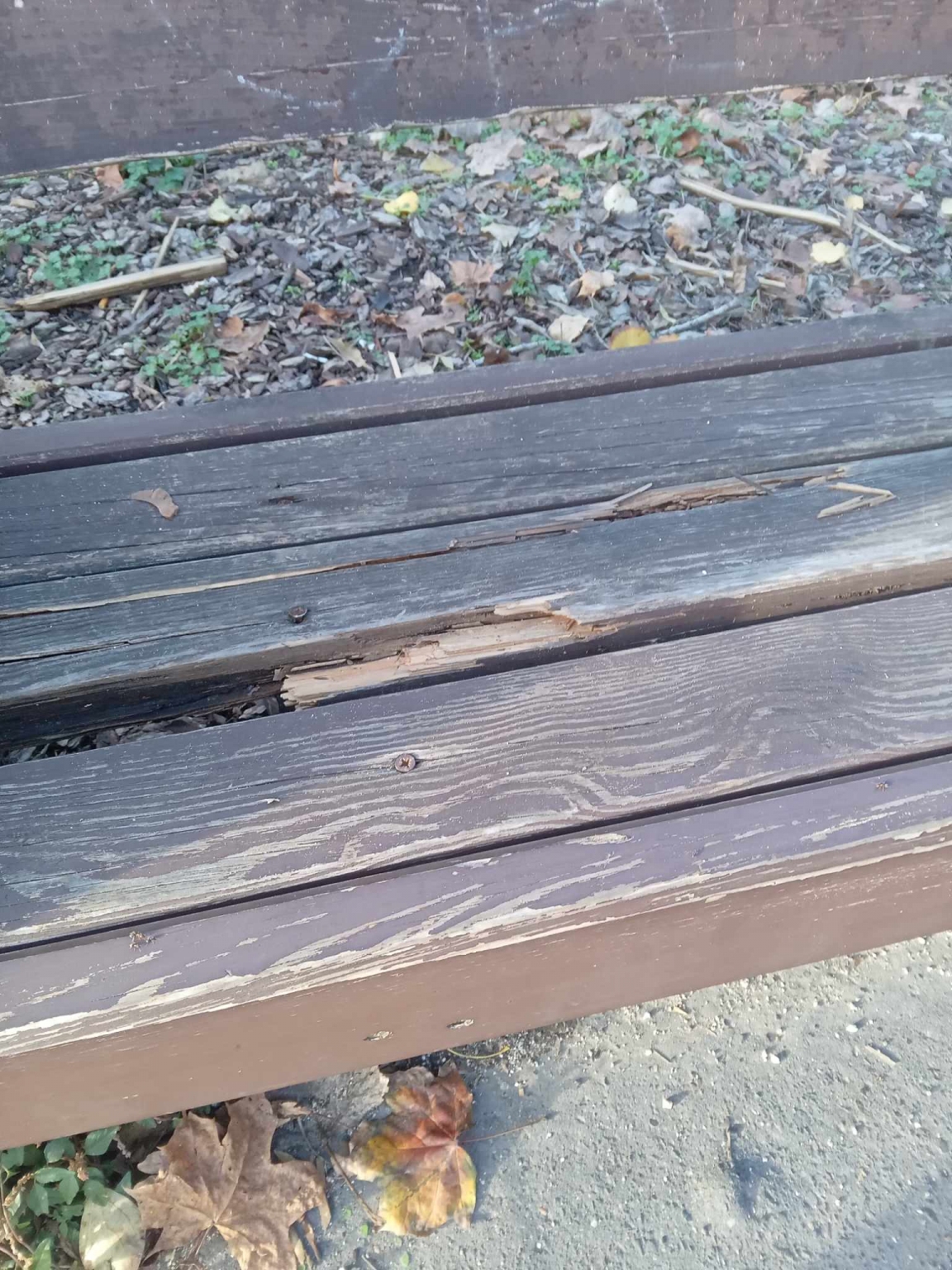 Az egyik pad a trolimegálló mellett ilyen állapotba került az utóbbi hetekben. Kérem, javítsák. Köszönöm.