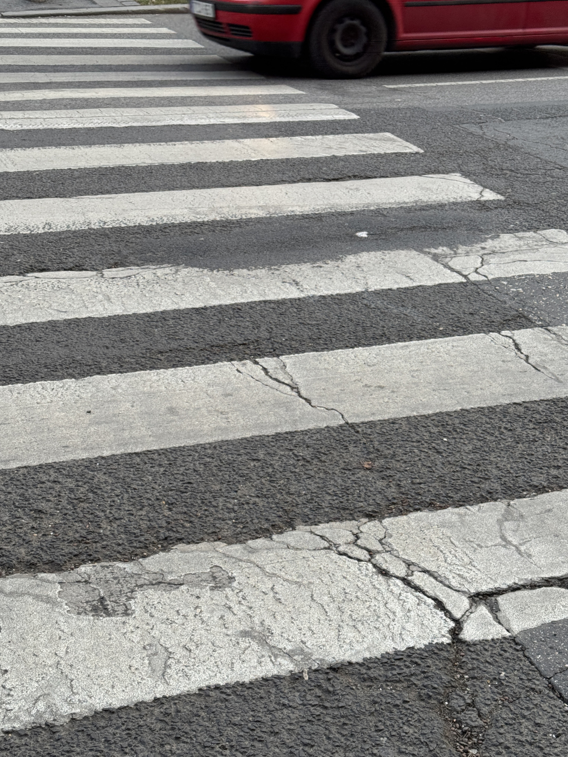 A zebrán egy mély, nagy kiterjedésű kátyú található, amely balesetveszélyes a gyalogosokra nézve (is), kérnénk szépen a mielőbbi javítást.