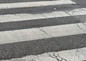 Balesetveszélyes kátyú a gyalogátkelőhelyen