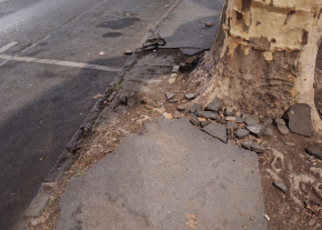 A Kodály Köröndön az indiai (Haveli) Étteremmel szemben a fa gyökerei felnyomták a járda burkolatát és a beton darabok folyamatosan válnak le, csúszkálnak ahogy rálép az ember balesetveszélyes. Kérem szíveskedjenek a fa körül a burkolatot kijavítani, teret engedve a fa gyökereinek is. Köszönöm szépen!