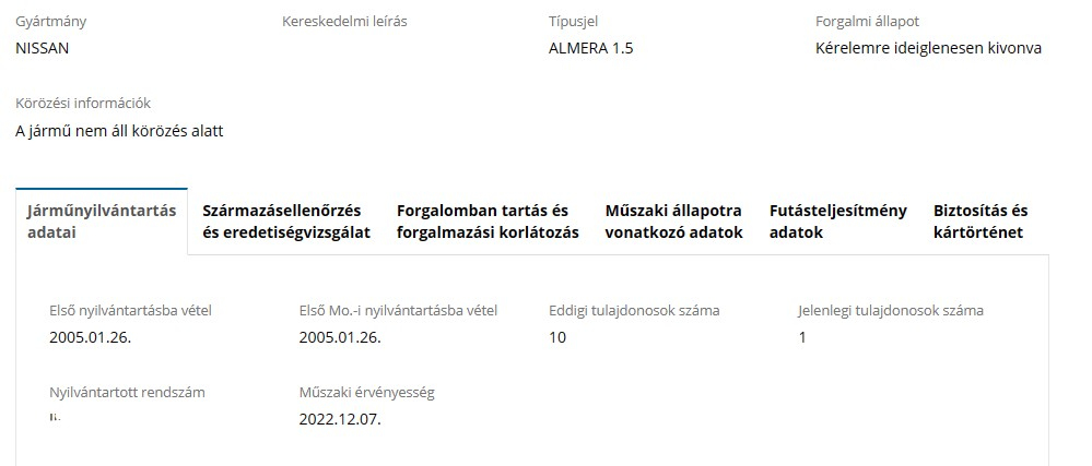 Műszaki lejárt 2022.12.07. Jelenleg ideiglenesen ki is van vonva.