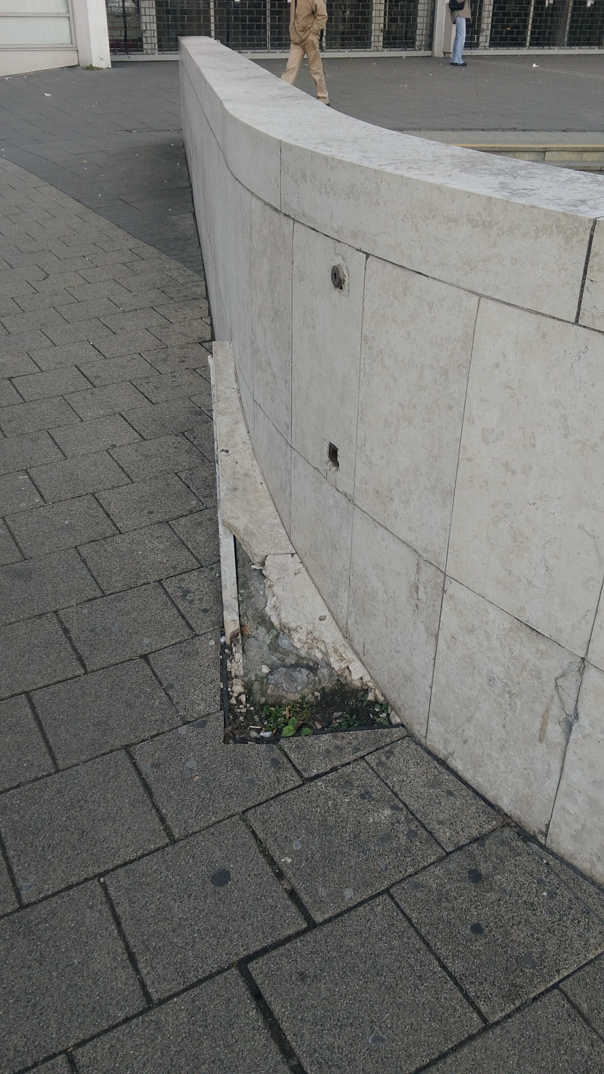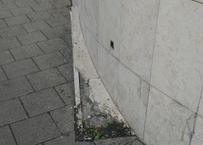 Kérem, javítsák a képen látható helyen a metrólejáró burkolatát! Az Újbuda-Központ M4 metrómegálló Fehérvári úti csarnoknál lévő kijáratánál van.