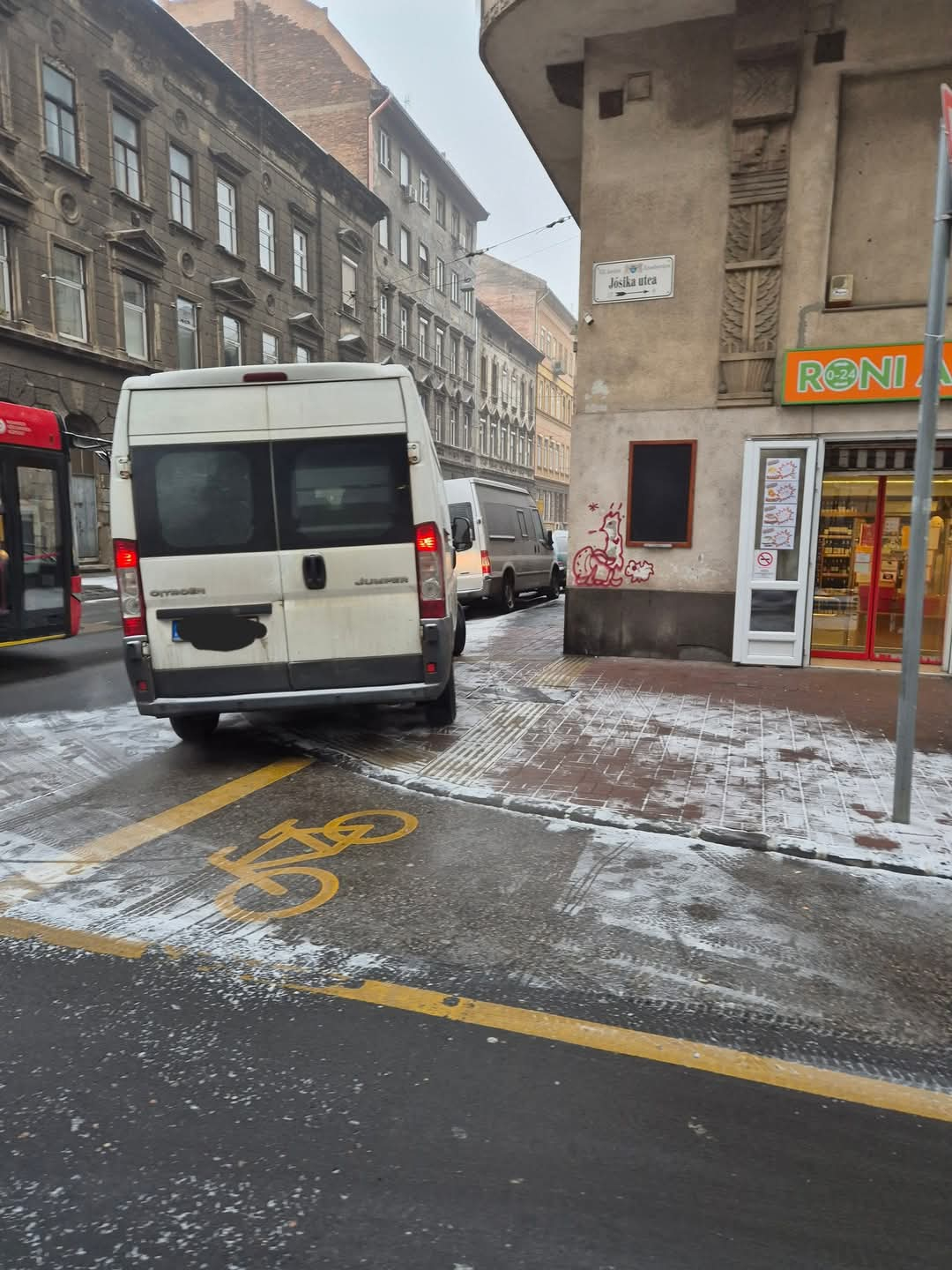 Parkolásgátló oszlopok hiányoznak a VII. kerületi Izabella utca és Jósika utca sarkáról, ezért a tahó árúszállítók a járdát teljesen kisajátítják. Kérem az illetkést, hogy a járdán való (tahó) tilos parkolást fizikailag gátolják meg.