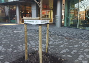 Dózsa György úton, a Diageo irodaház előtt egy facsonk van. Kérnénk a fa pótlását.