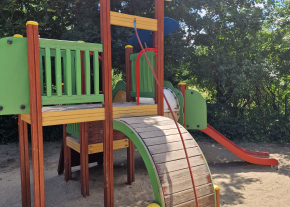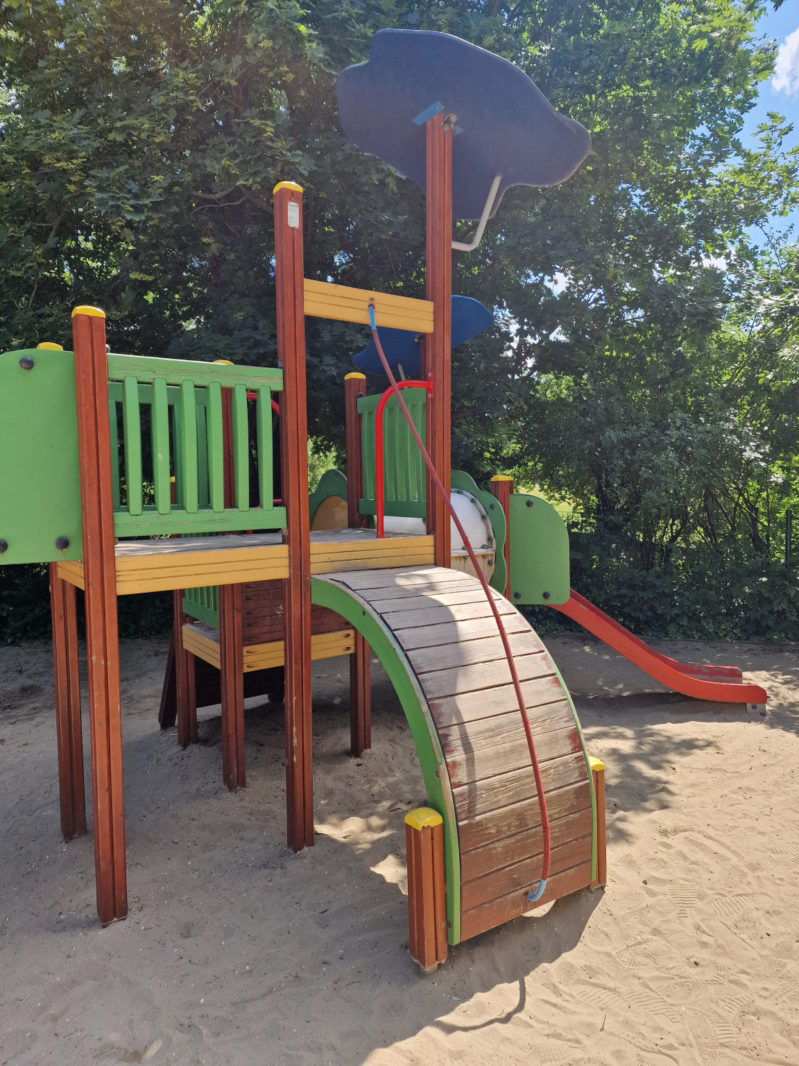A Gesztenyés játszótéren a képen látható mászókáról hiányzik egy kötél, amin fel lehet húzódzkódni.