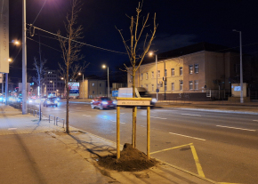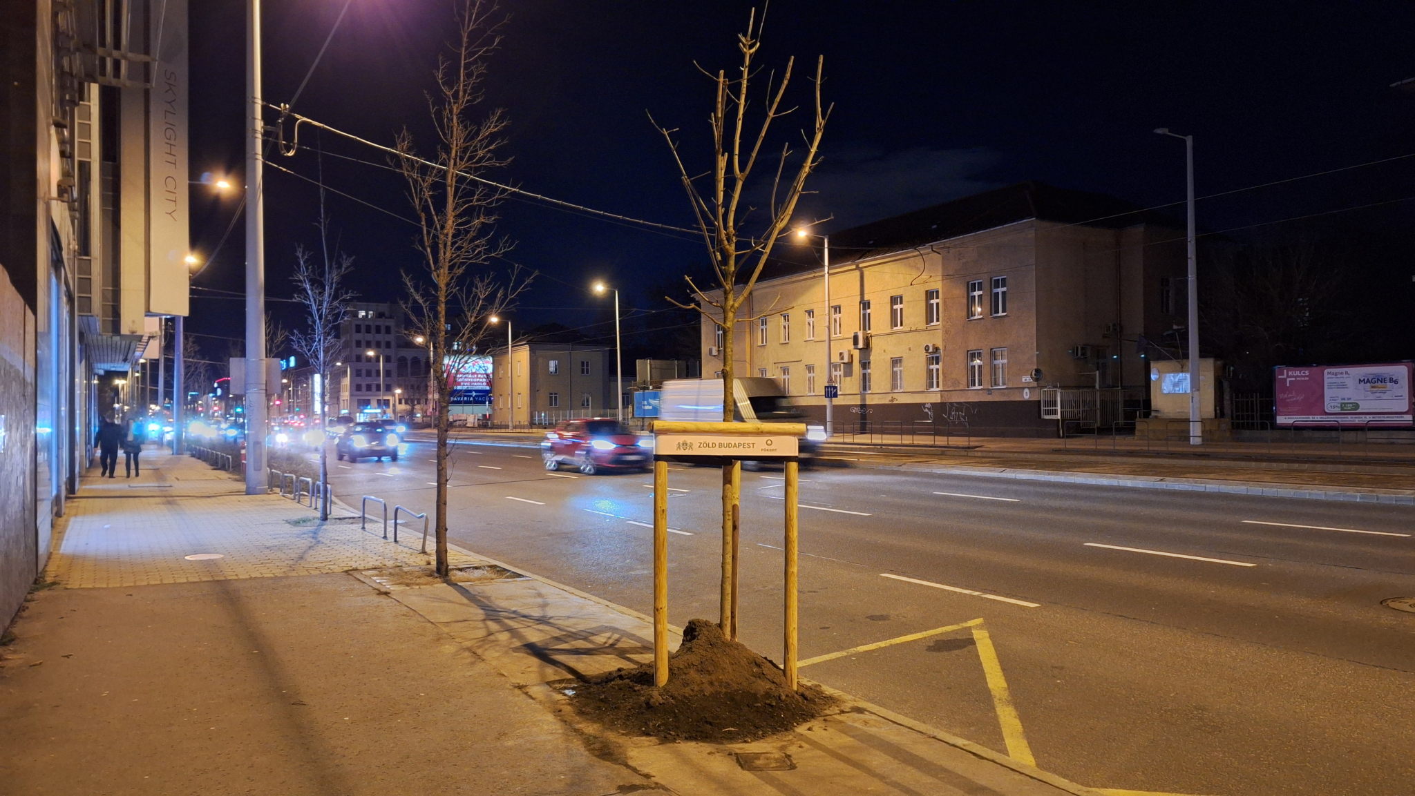 A Róbert Károly körút 50. előtt van egy üres fahely, illetve benne egy fatuskó.