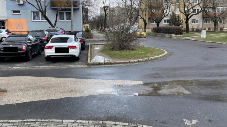 A bejelentésben részletezett problémát megvizsgáltuk és rövid átfutási idővel a jelenleg zöld területet burkolt felület kialakítással és faültetéssel rendezzük.