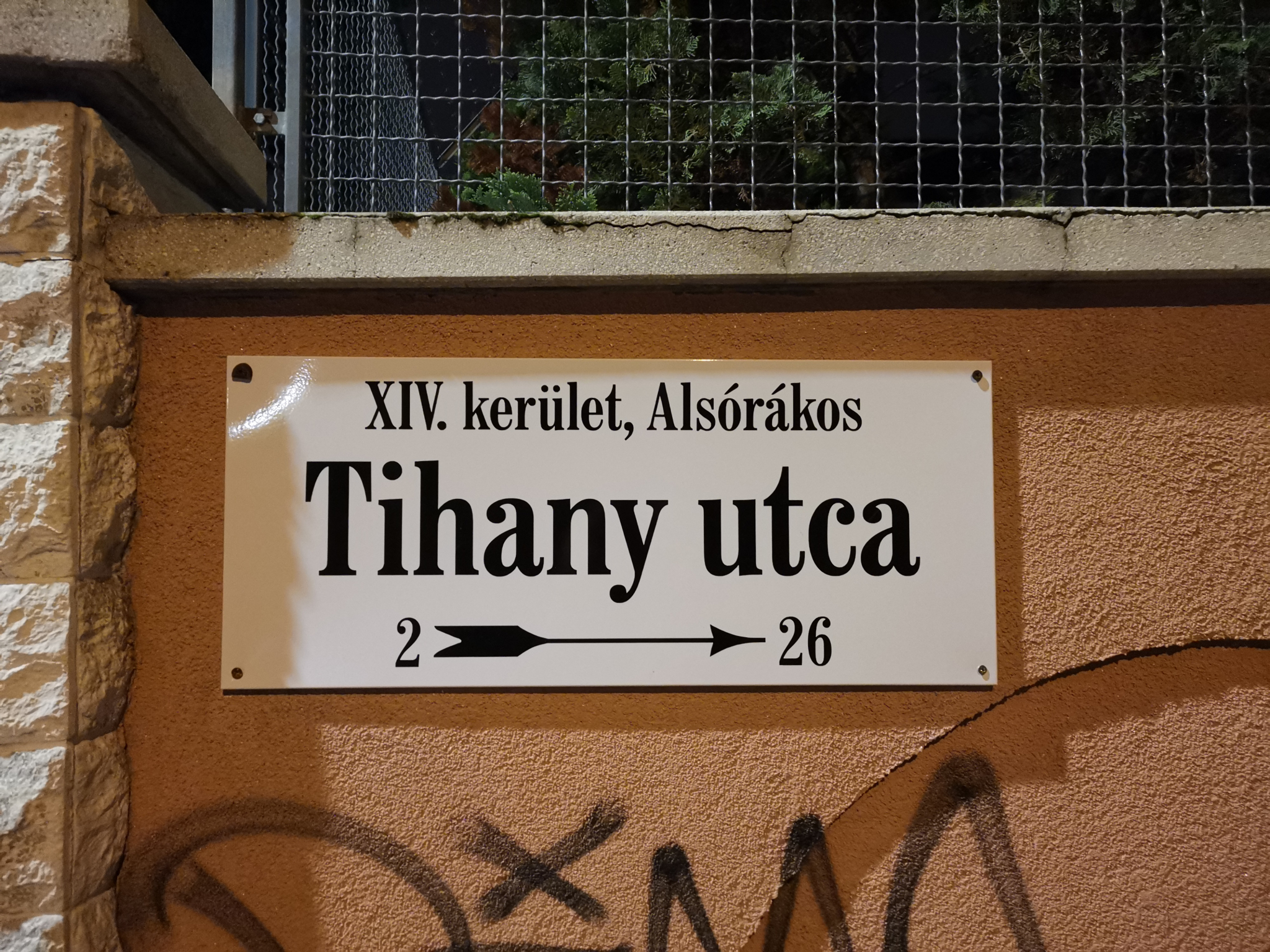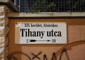 A Tihany utca 2. szám kerítésén lévő utcatáblát megpróbálták lefeszegetni. Kérem az illetékest a tábla javítására, rögzítésének helyreállítására.