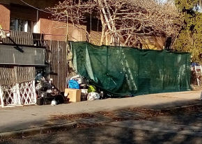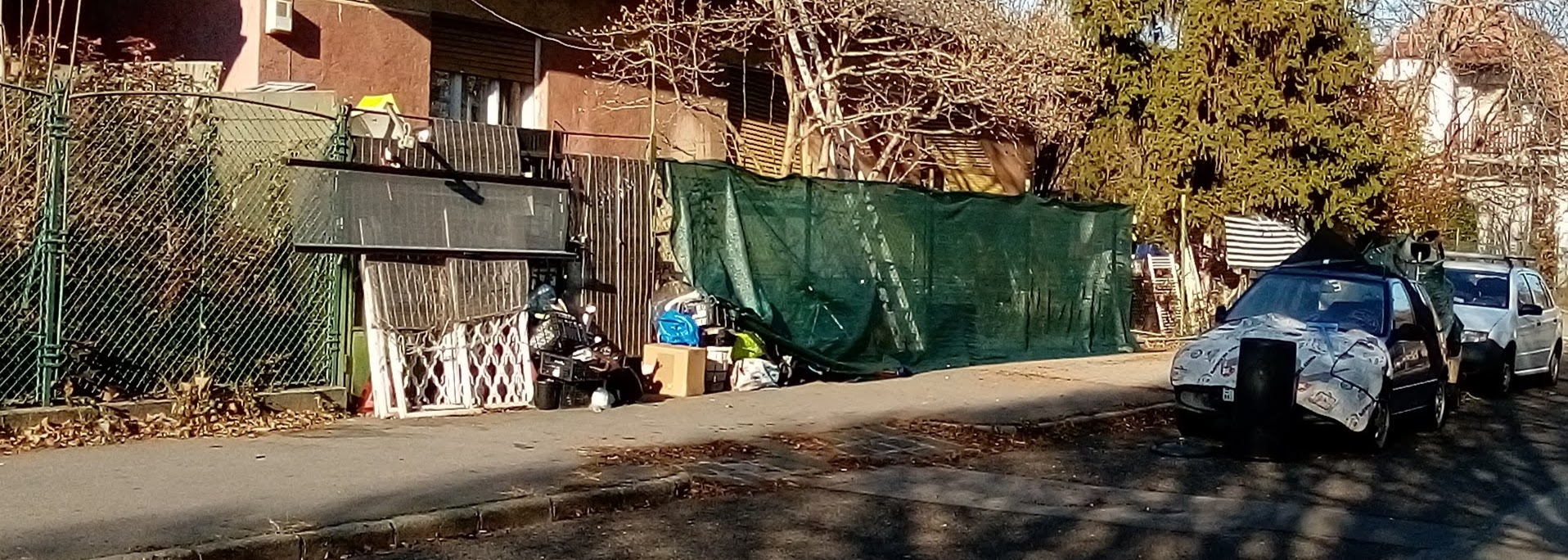 Újbuda XI. kerület Kenderes utca 7. előtt a közterületen rendszeresen kipakolt lomok.