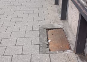 A Repülőtéri útnál lévő vasúti átkelőnél található egy akna, aminek a beton fedele elmozdult.