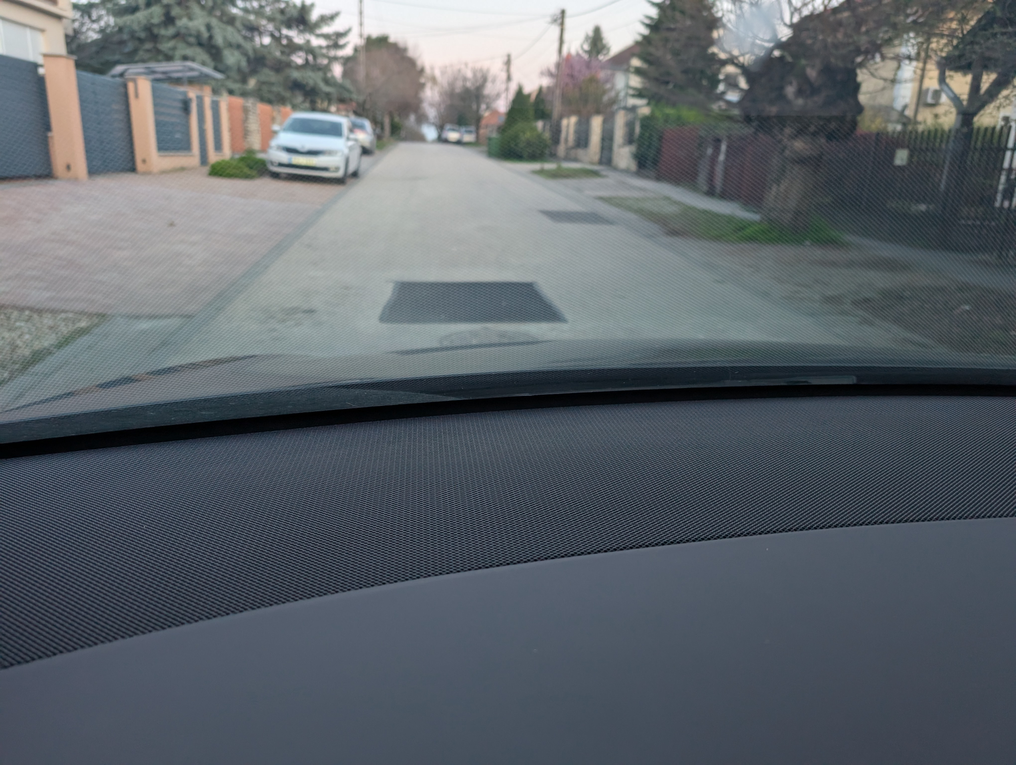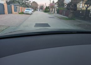 A képen látható elég nagy méretű kátyú keletkezett az út közepén a csatornefedél mellett