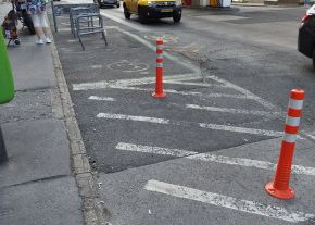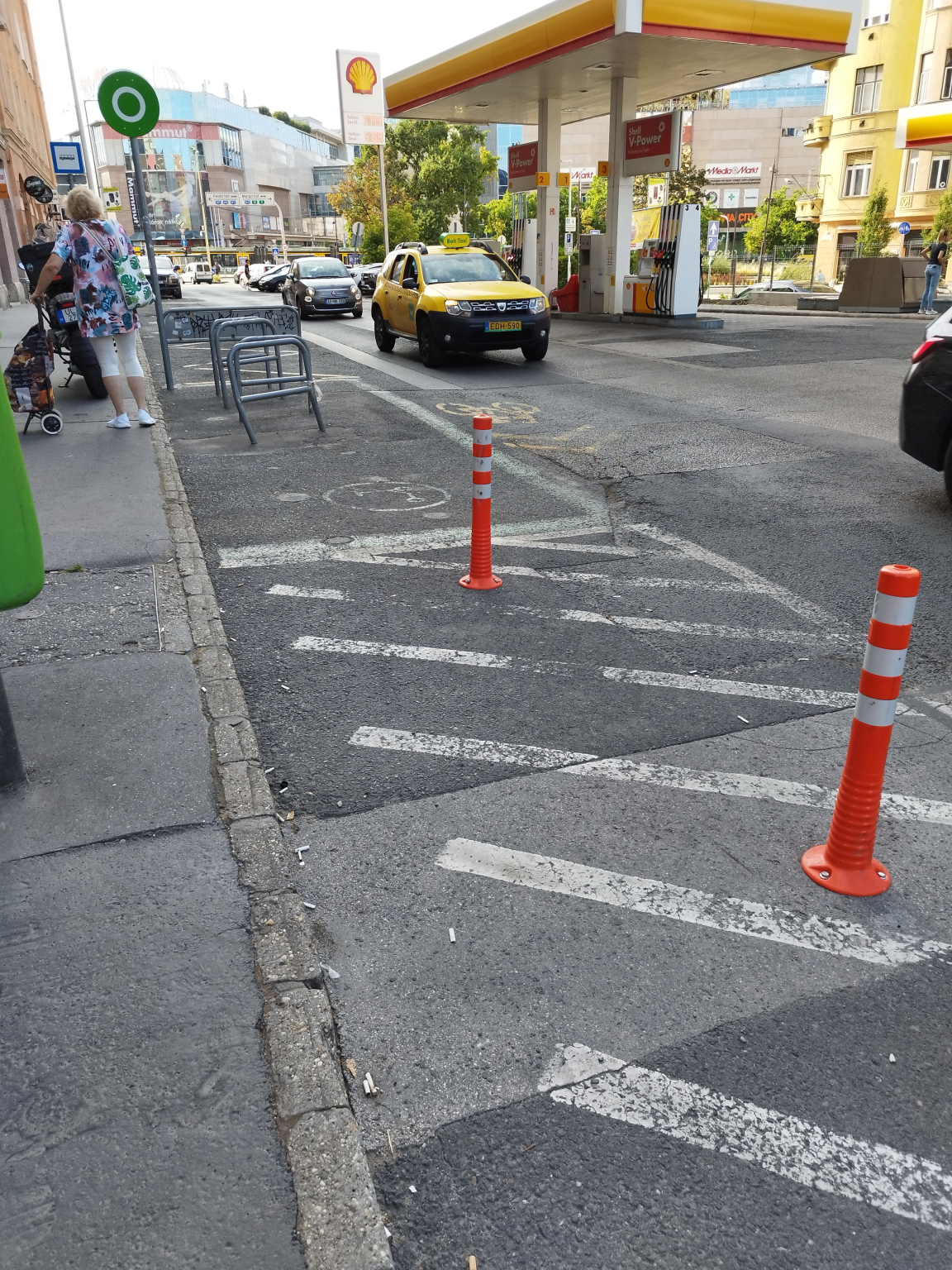 Más kerületekben a sarkokat a járdaszintre emeléssel vagy oszlopokkal védik meg a szabálytalan parkolástól - lásd a képen.