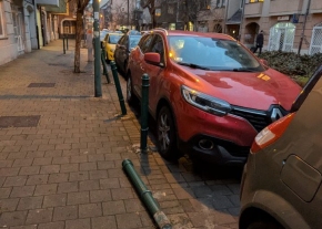 A (Határ úti csomopont) Ferde utca melletti szervíz útjon az IBIS Hotel parkolja előtti közlekedési tábla az érintett.