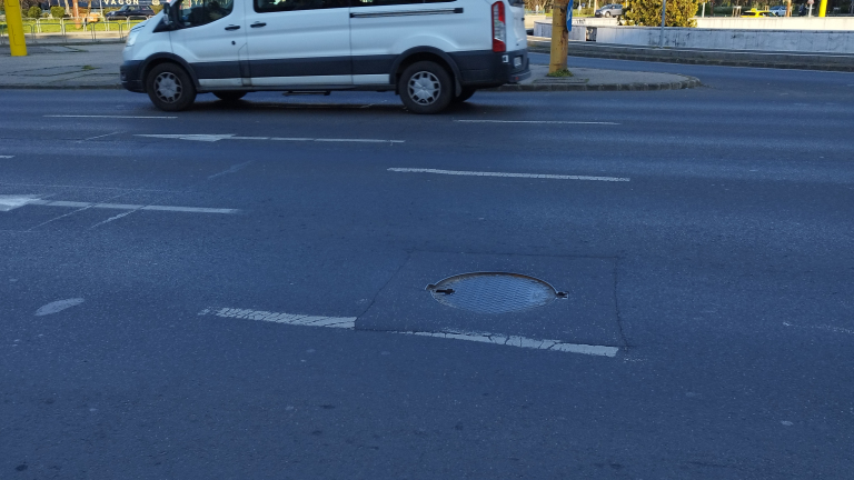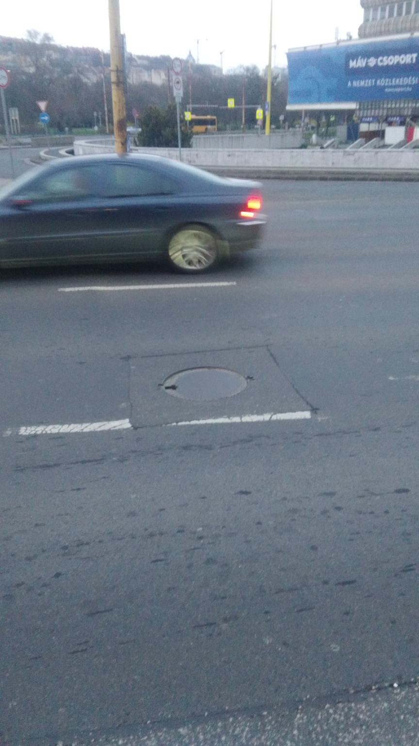 A Déli Pályaudvarnál a képen látható csatornafedő megsüllyedt.