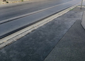 Bokatörő járdahiány- ez egy hihetetlenül veszélyes járdahiány , egy rossz lépés és fekszel a síneken.