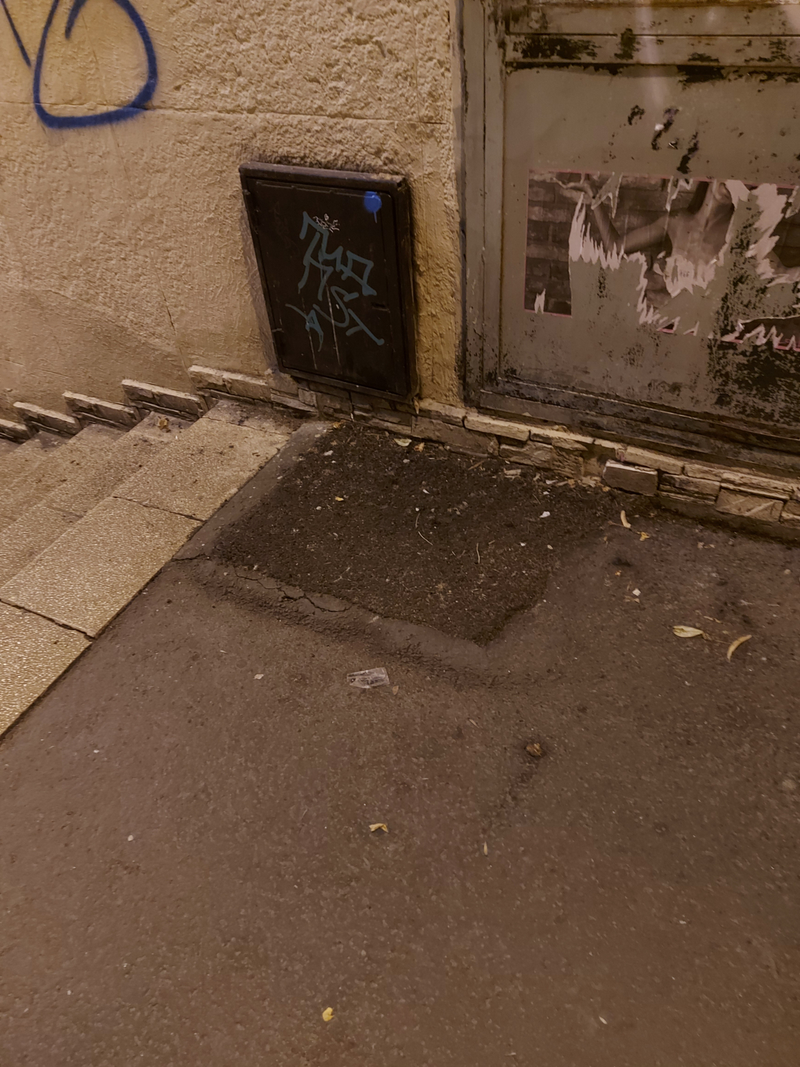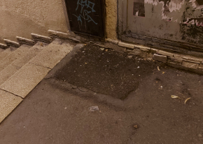 A Mechwart lépcső elején egy elektromos közműfedlap teljesen korrodált és ki is lyukadt.