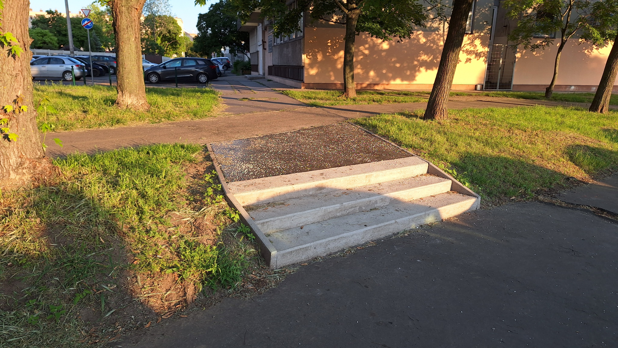 A Topánka utca 2-nél van egy szinte járhatatlan állapotban lévő, romos lépcső.