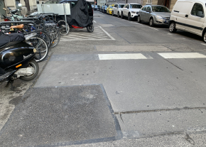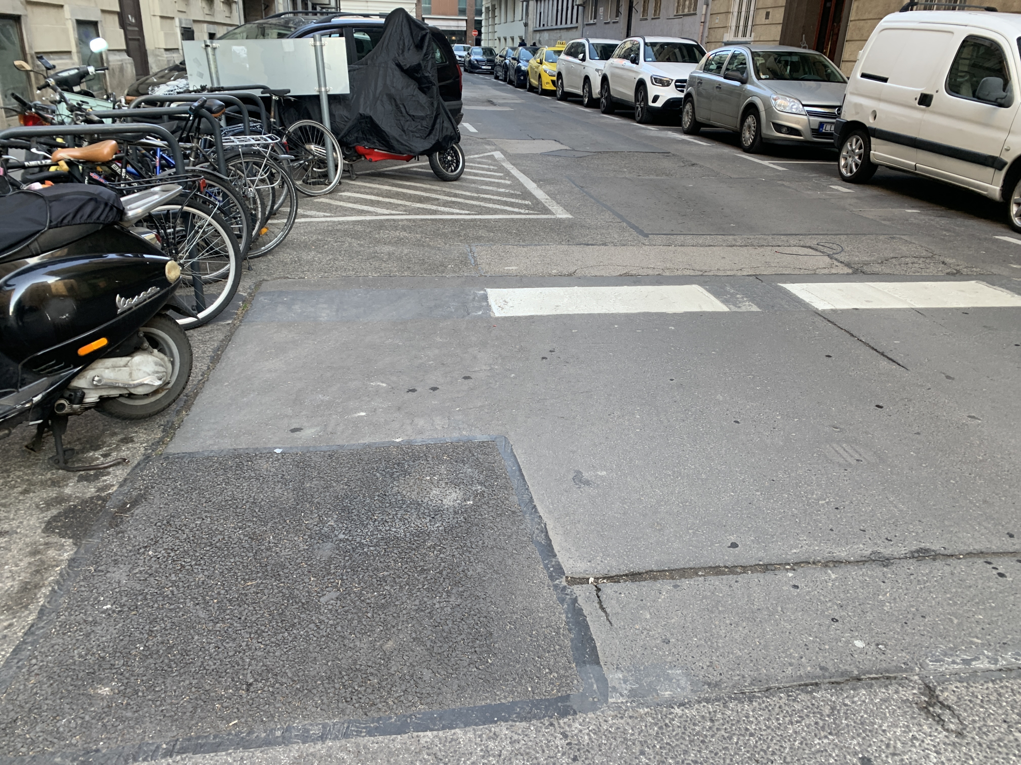Az átkelőhely és a helyzetjelző vonal között még kopottan látható vonal egy régi burkolati jel, amelyet az önkormányzat egy útburkolatjavítási munka során részben leaszfaltozott. A szaggatott vonal nem része a forgalmi rendnek, annak felújítása nem szükséges.