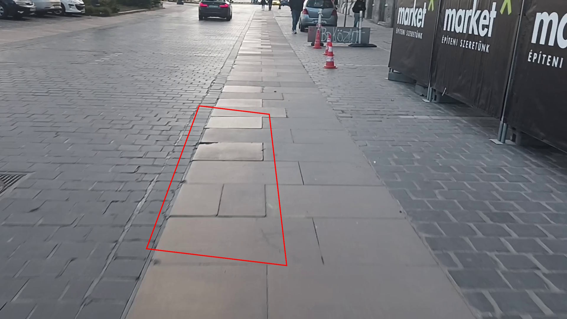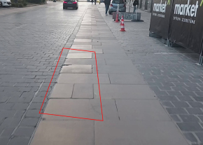 Helyszín: Budapest, Lánchíd utca 19, 1013, dél felé haladó kerékpársáv, 19es szám Bistro hotel előtti szakaszon több helyen is össze van törve a kerékpársáv burkolata, 1.5 ujjnyi kitüremkedés van.