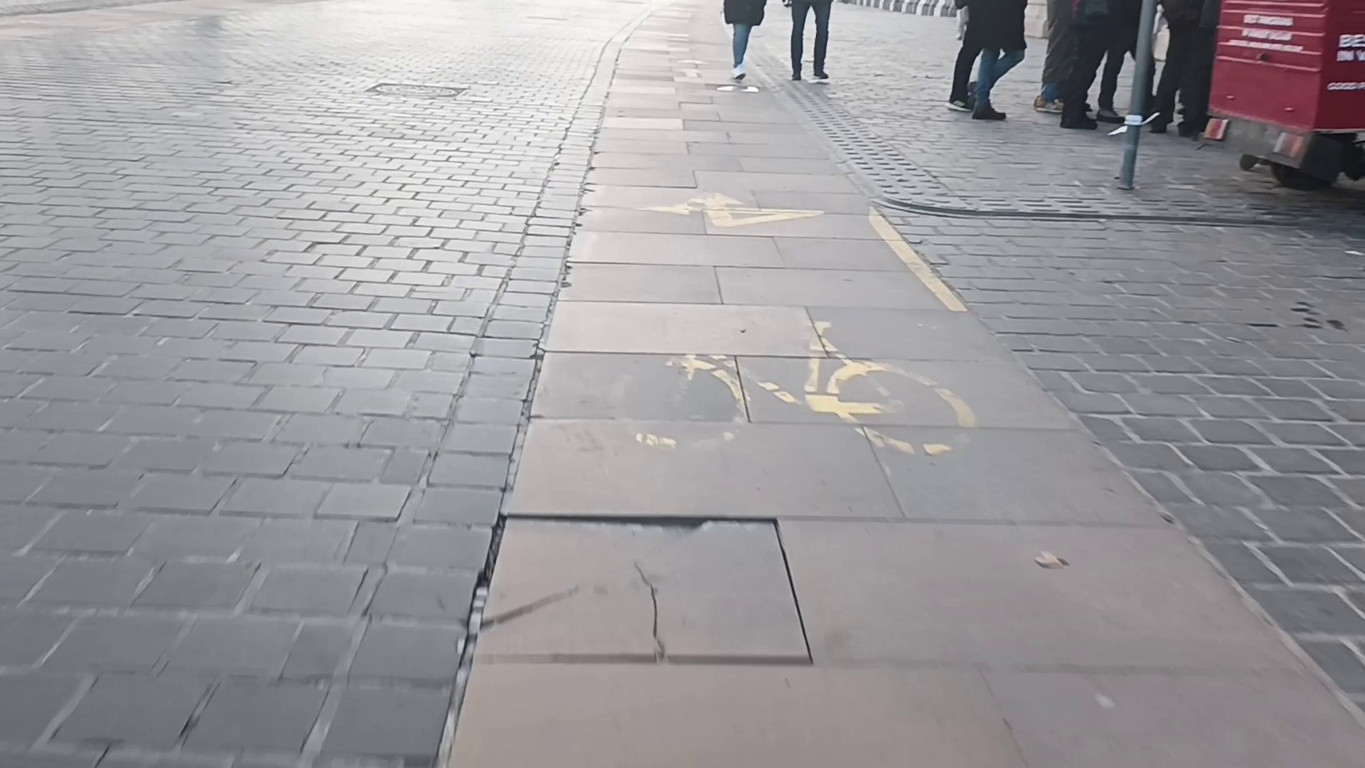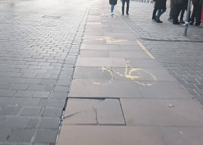 Helyszín: Budapest, Ybl Miklós tér 2 - 4, 1013, dél felé haladó kerékpársáv, Ybl Bistro kezdeténél és végénél is a kerékpársávon lévő burkolat töredezett. 2 ujjnyi vastag kitüremkedések jelentenek közlekedési veszélyforrást.