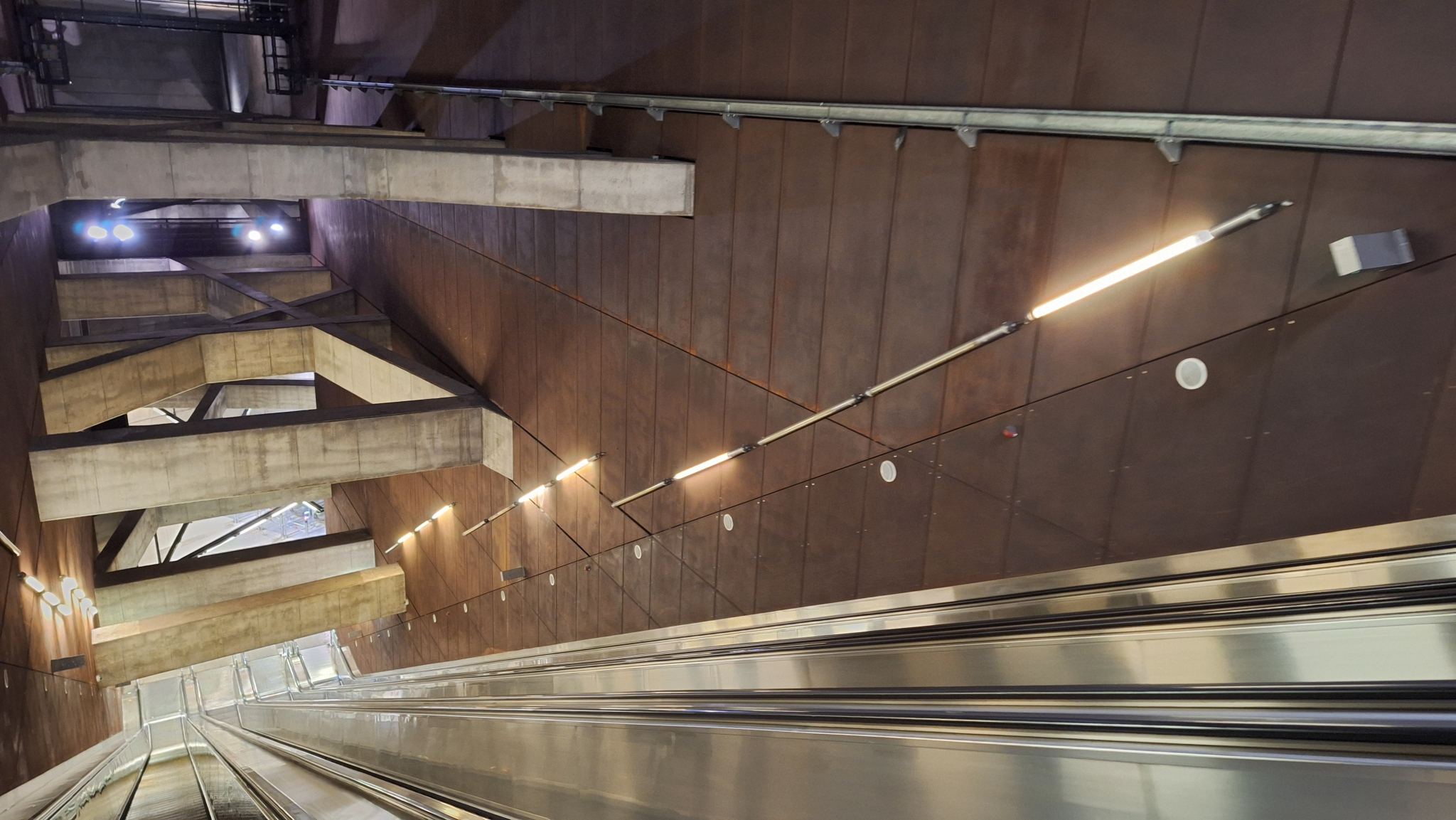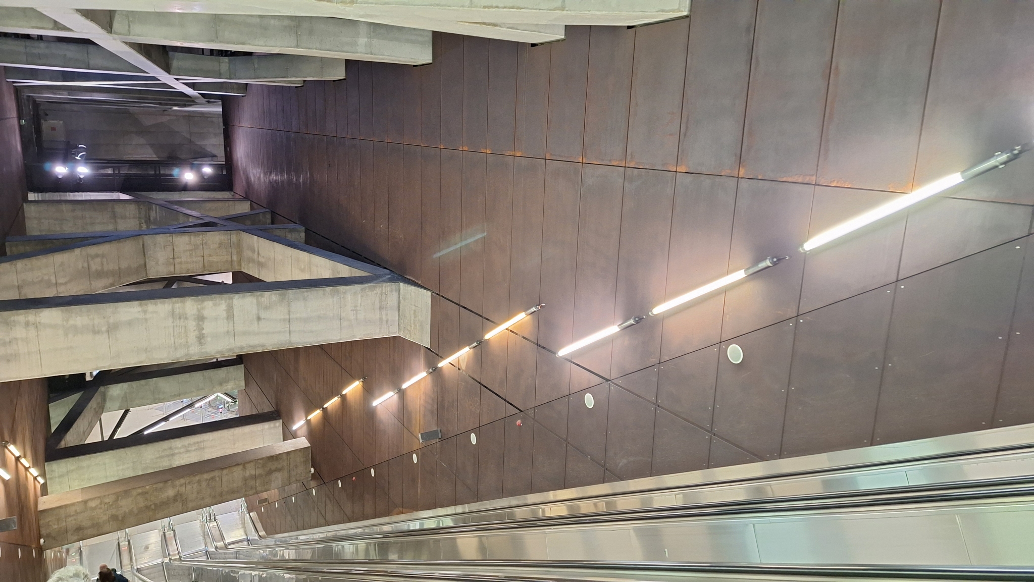 A Fővám téren a metróhoz vezető lépcsők felett, mellett több fénycső kiégett.
