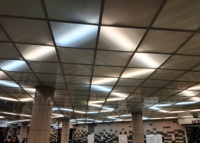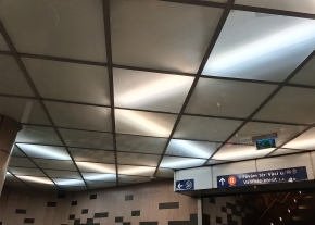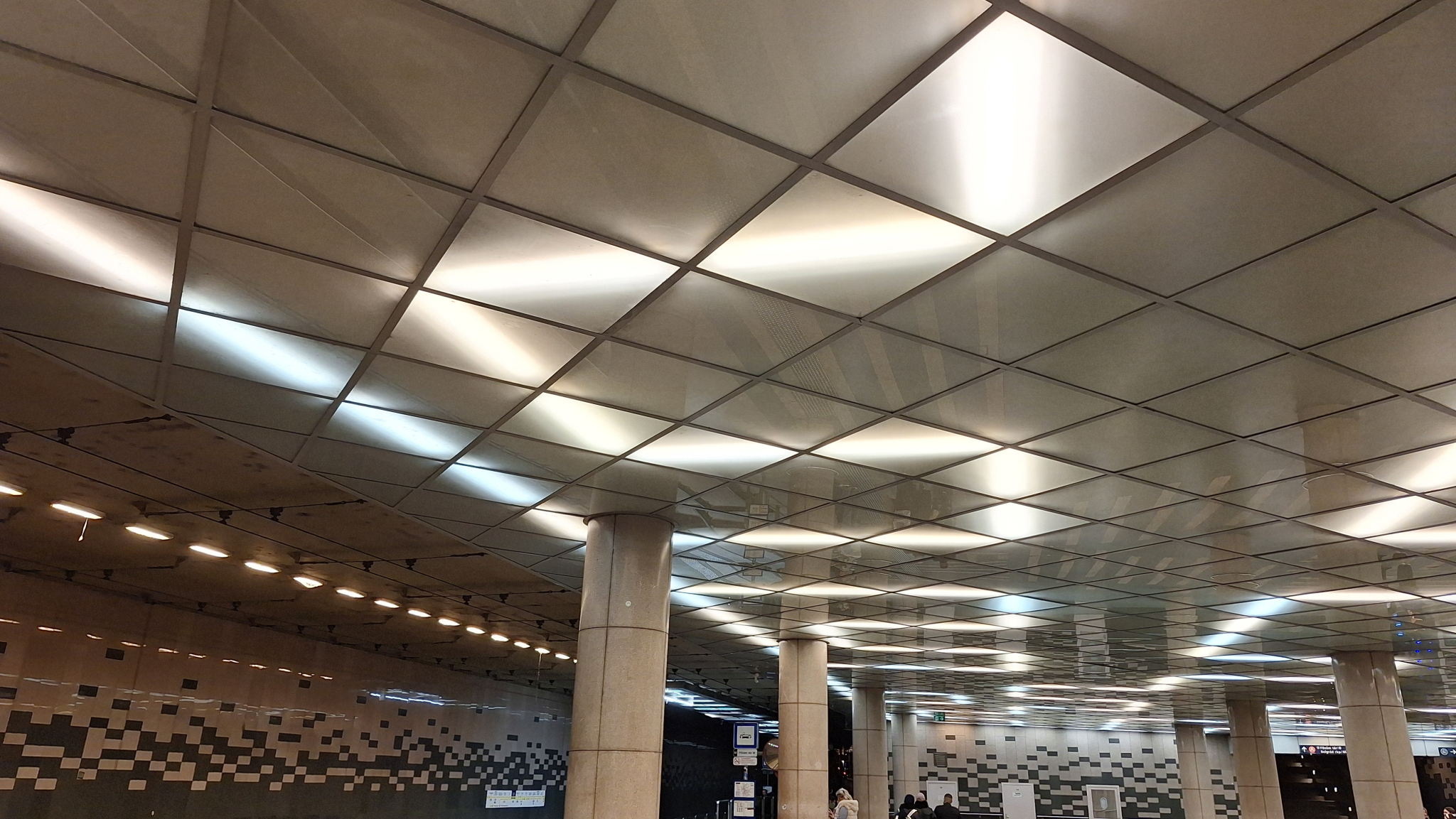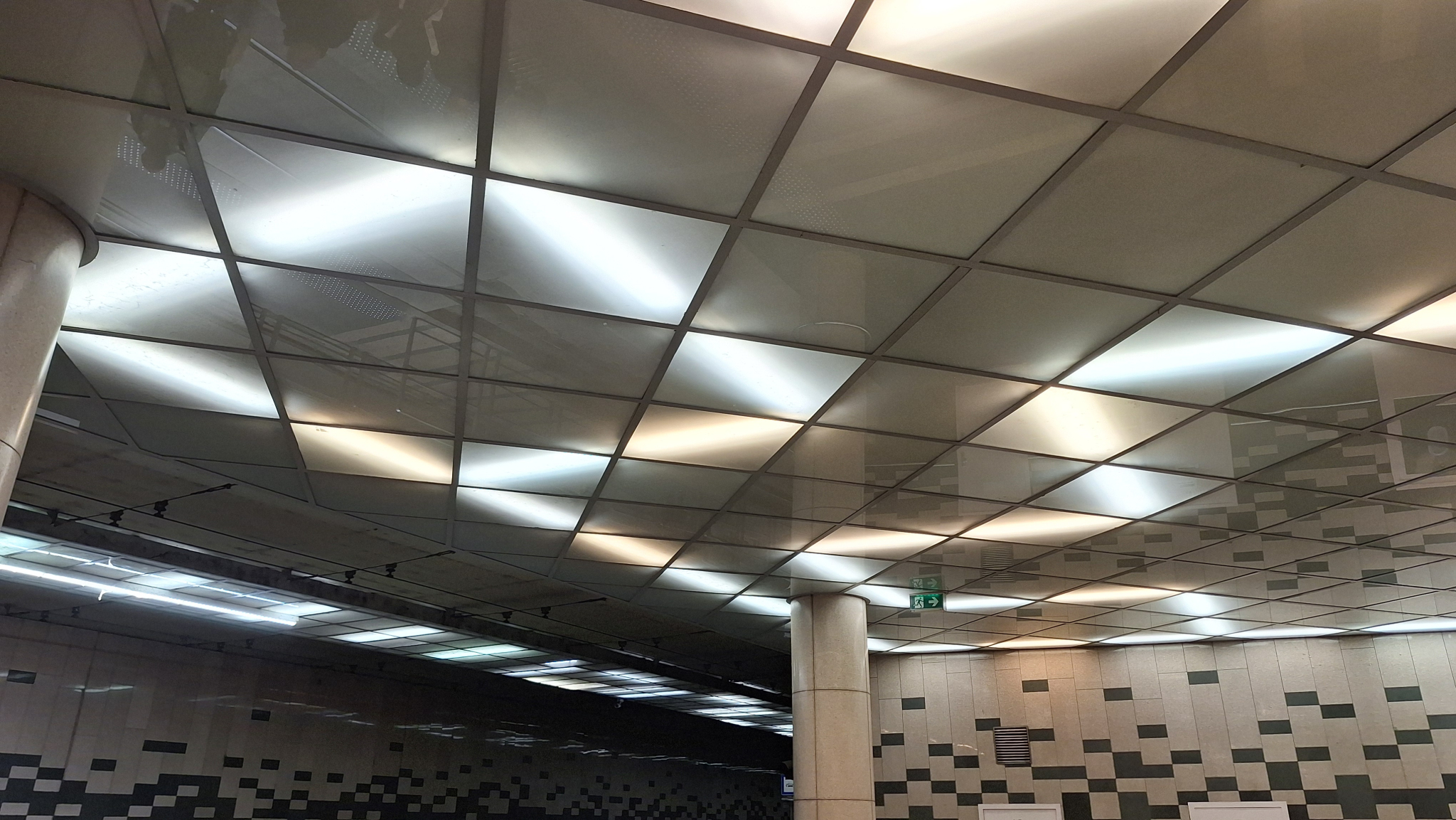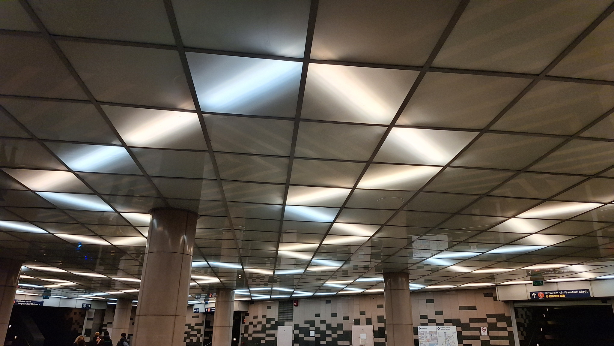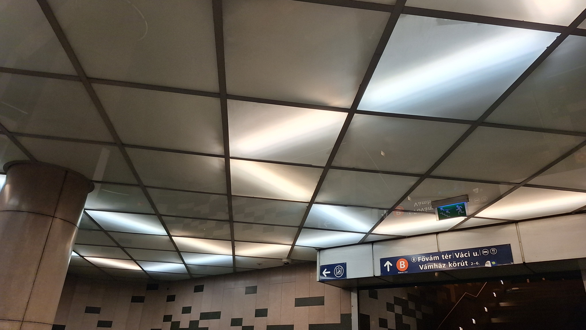 A Fővám téri aluljáróban ha jobban megfigyeljük a világítótestek által kiadott mintázatot, akkor jól látszik, hogy jó pár fénycső ki van égve.