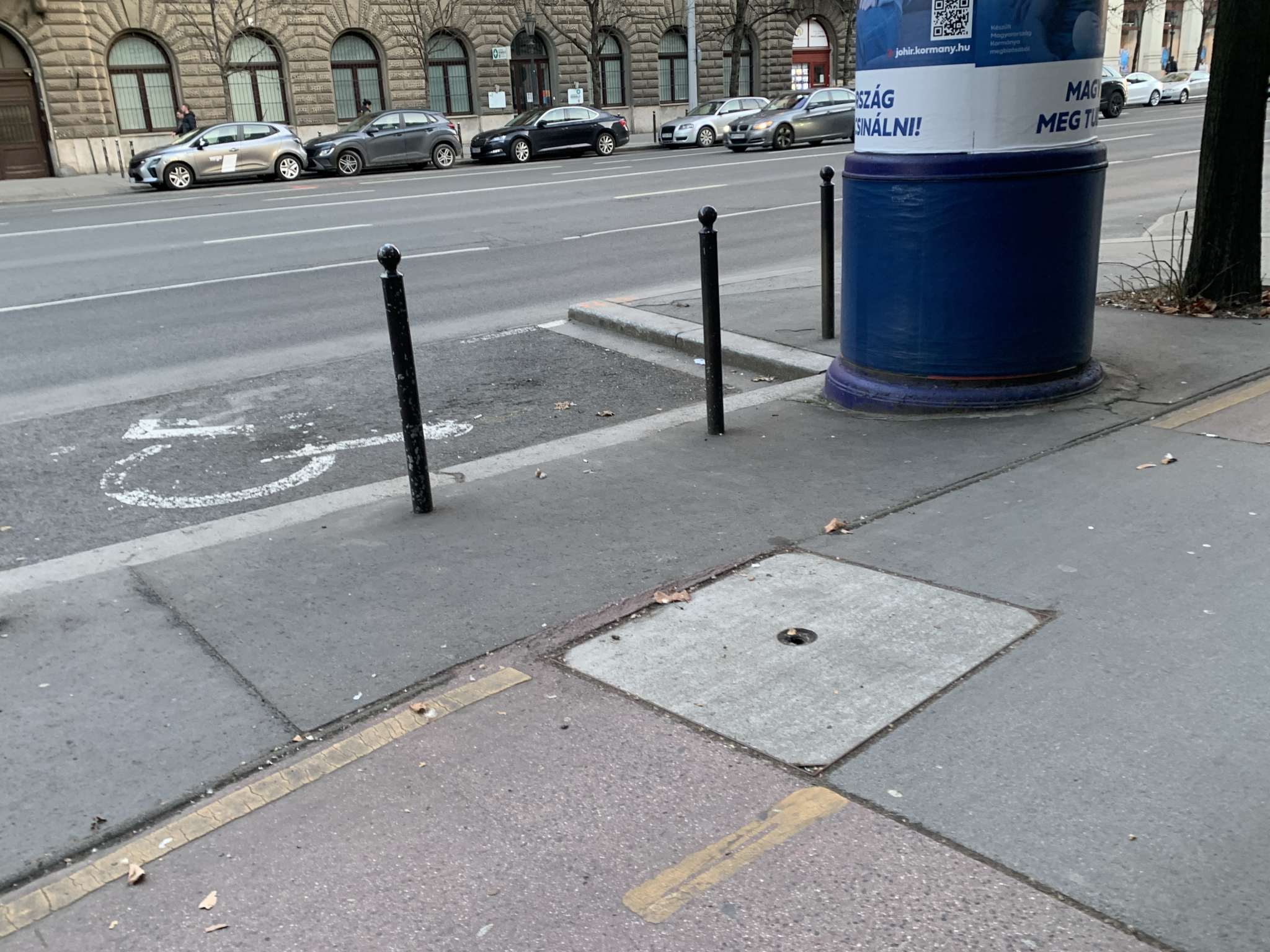 A Bajcsy-Zsilinszky úton lévő bicikliúton a fedlap sérült.