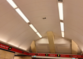 Az Astoria metróállomás középső peronján több lámpa kiégett.