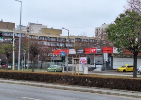 A Topánka utca 1-el szemben a zöld sávban jó pár fa hiányzik, többnek csak a csonkja maradt.