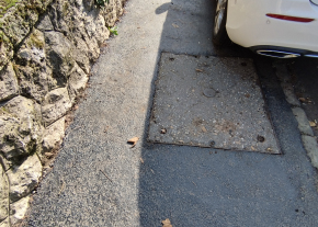Közműfedlap mellől elfogyott járda