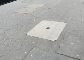 Az Erzsébet körúton, a képen látható fedlapból több darab hiányzik.