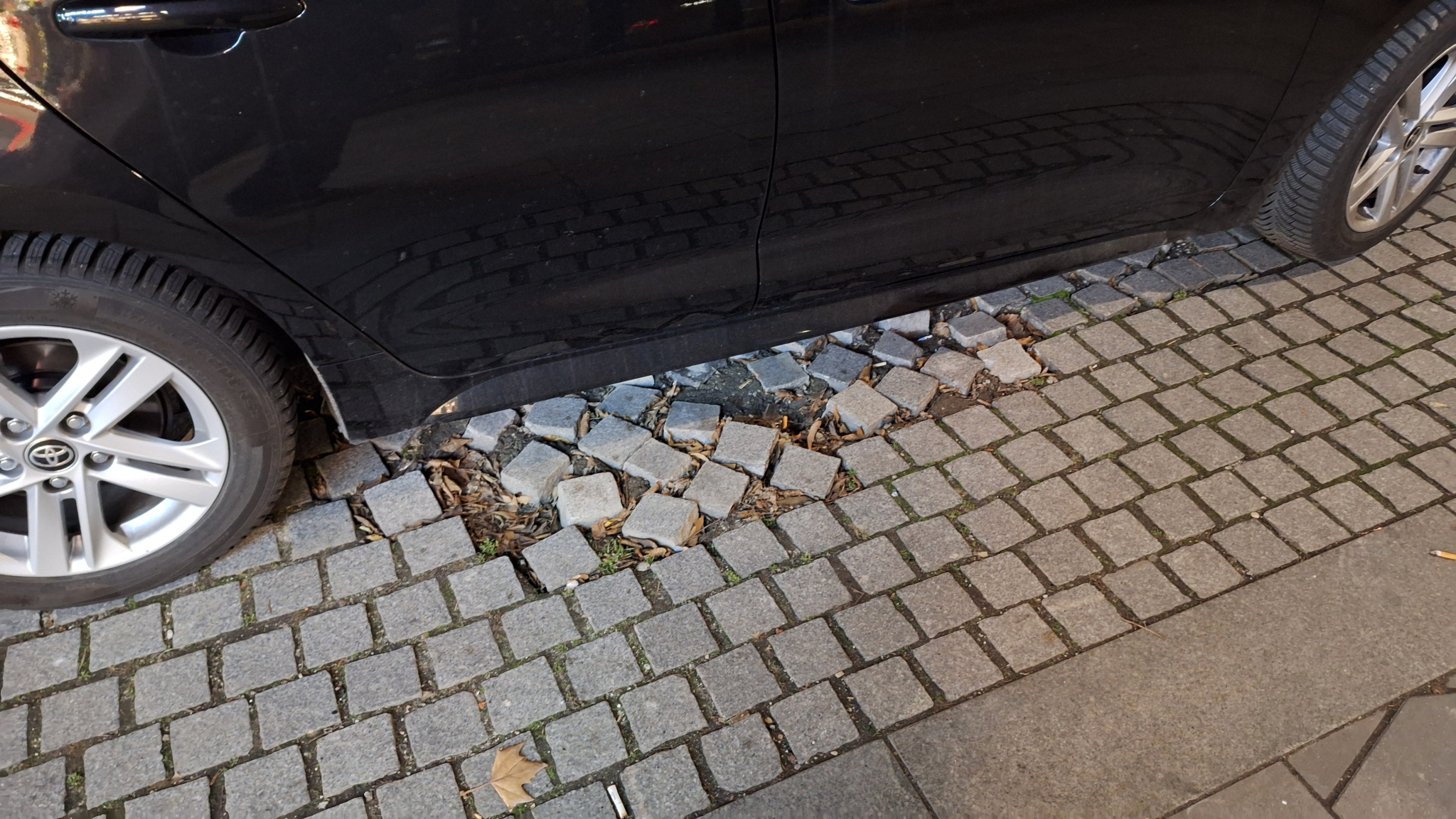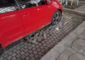 Úgy néz ki a járda, mintha csak úgy kiszórták volna a kockaköveket, mint egy doboz Legot.