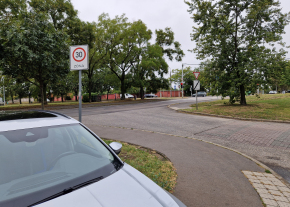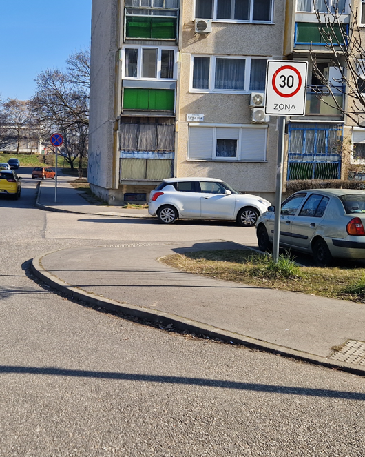 X. kerület Harmat utca 172. előtt a korlátozott sebességű övezet kezdete tábla kb. egy hónapja egy szeles nap után az oszlopon közel 180 fokban elfordult.
