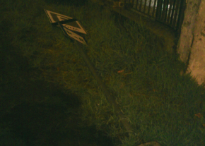 Ezúton szeretném tájékoztatni, hogy a közlekedési tábla azóta is ott fekszik a földön a helyszínen. Erről csatoltam egy képet a hozzászóláshoz.