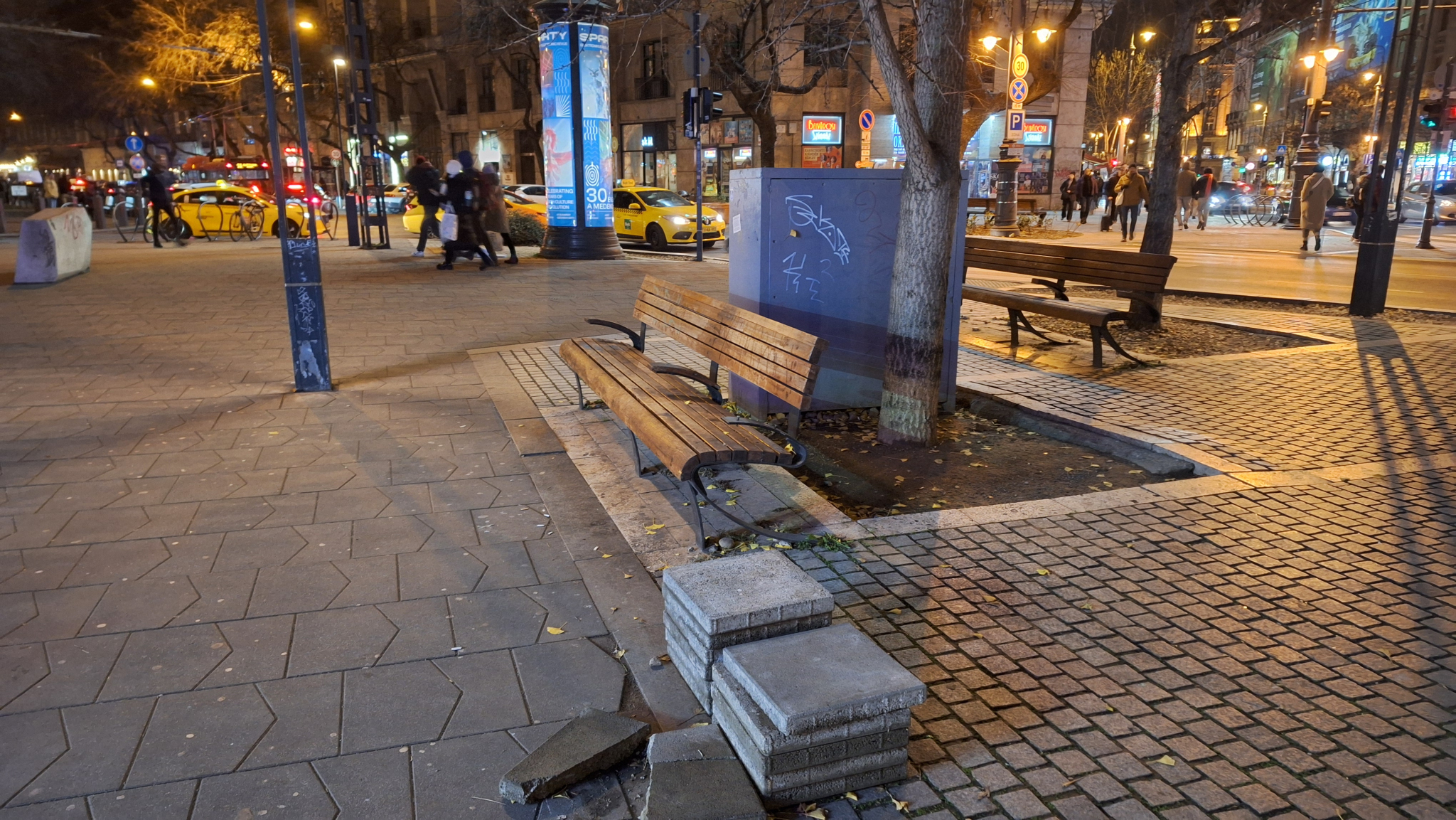 Elvitték a padokat a Skála melletti járdáról. Kérjük szíveskedjenek visszahelyezni azokat. Köszönjük.