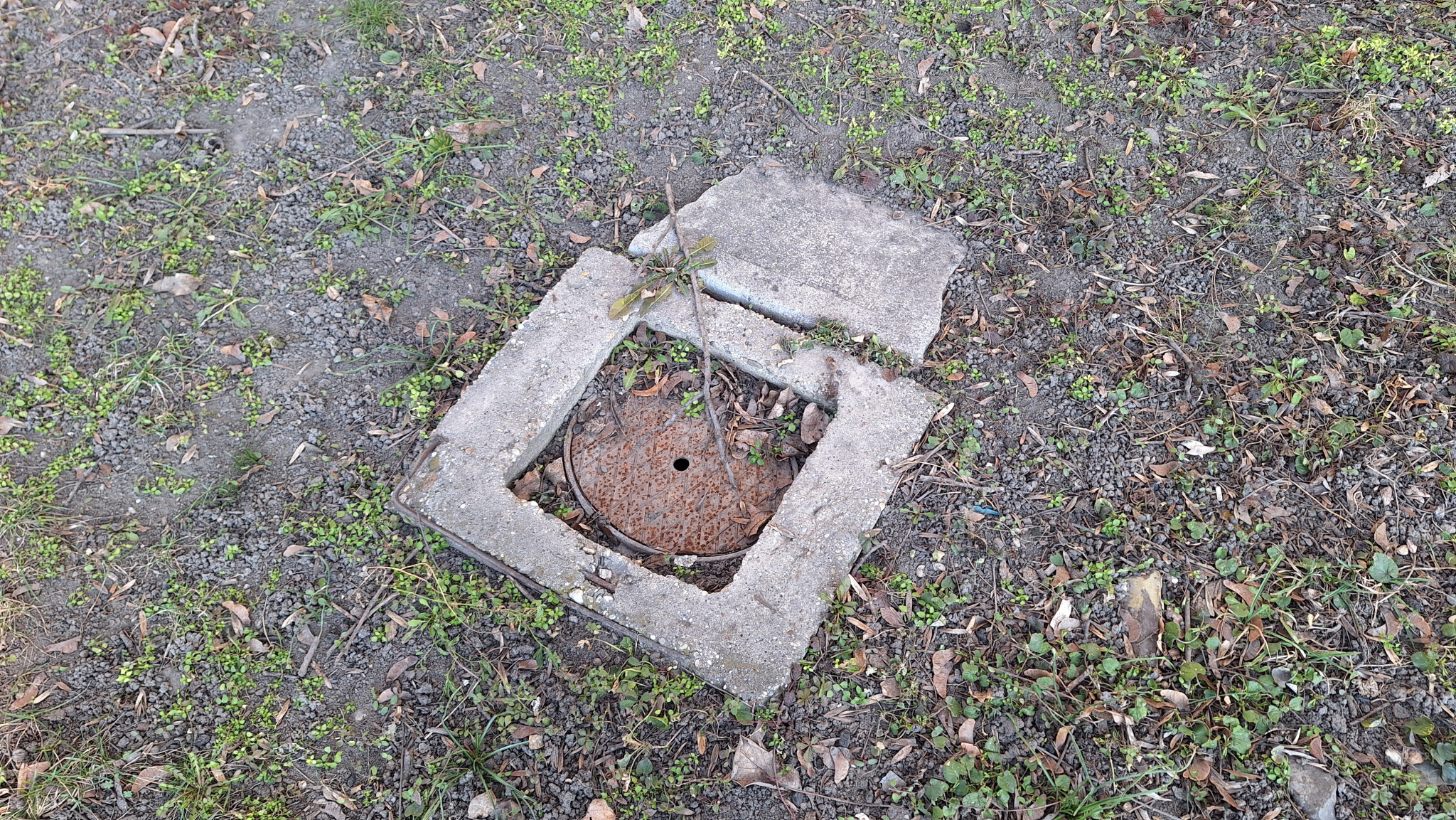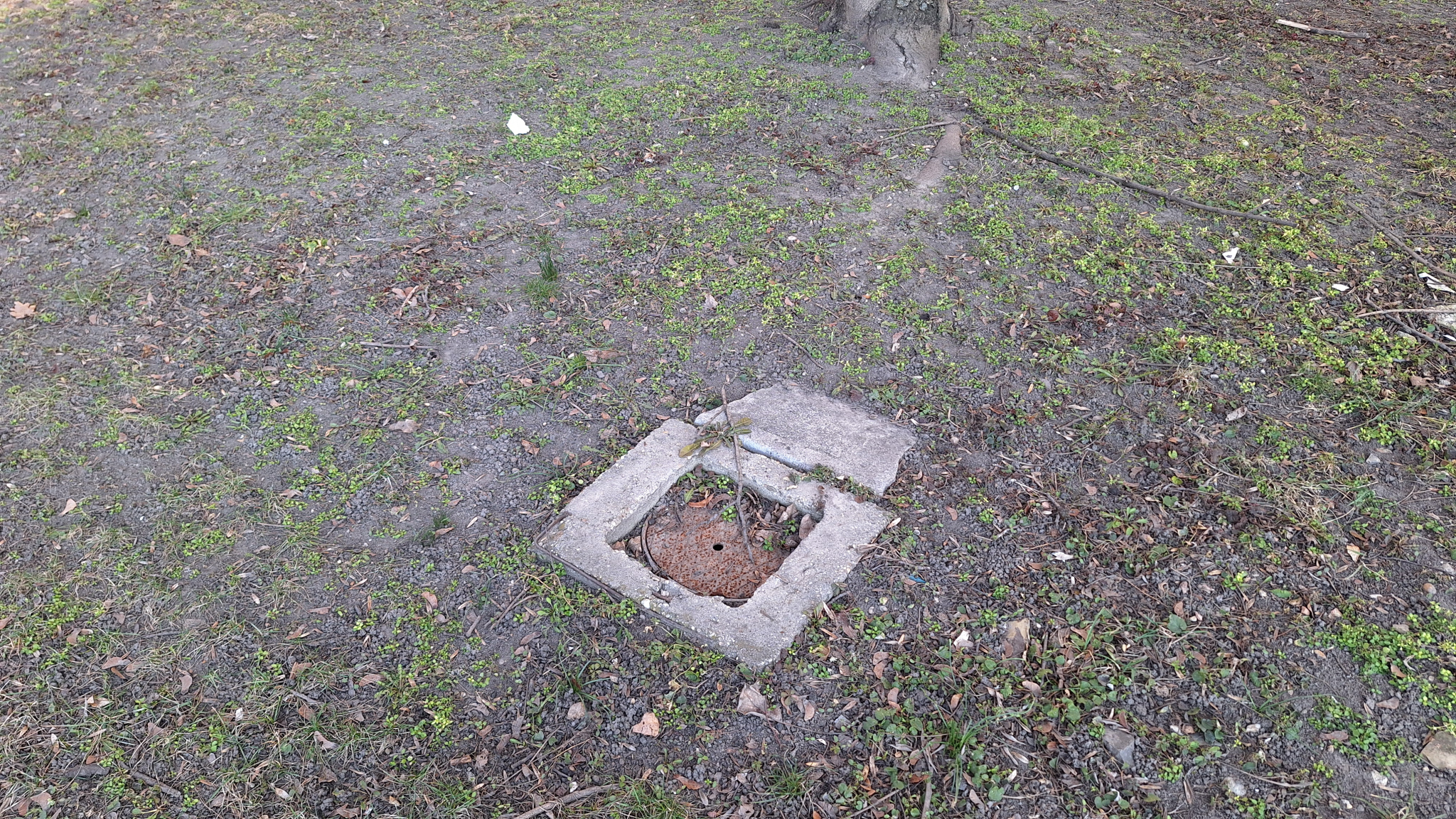 A Tétényi út 40. előtti zöldterületen hiányzik egy aknafedél.
