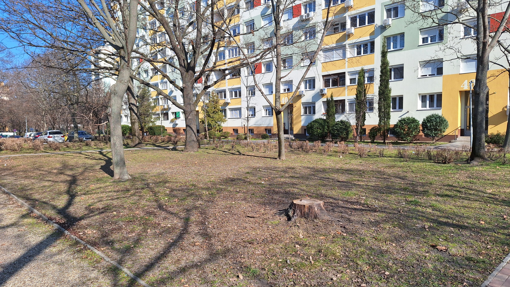 A Tétényi út 40-42. előtti zöldterületen több kiszáradt fa is áll, illetve egy erősen megdőlt tuja is. Ez utóbbit esetleg még meg lehetne menteni.