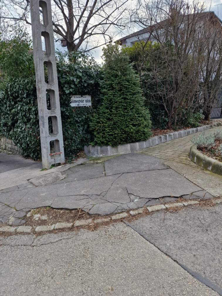 A Sümegvár utca - Pannonhalmi út kereszteződésében lévő járda javítását szeretném kérni.