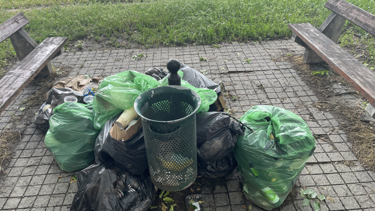 Stefania út 31 előtt már a Magyar kupa mérkőzés óta egy kupac szemetes zsák várja hogy elvigyék.