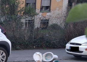 14. kerület Kacsóh Pongrác út 131/C elött egy fa tövében kidobott bútor hever.