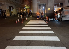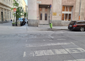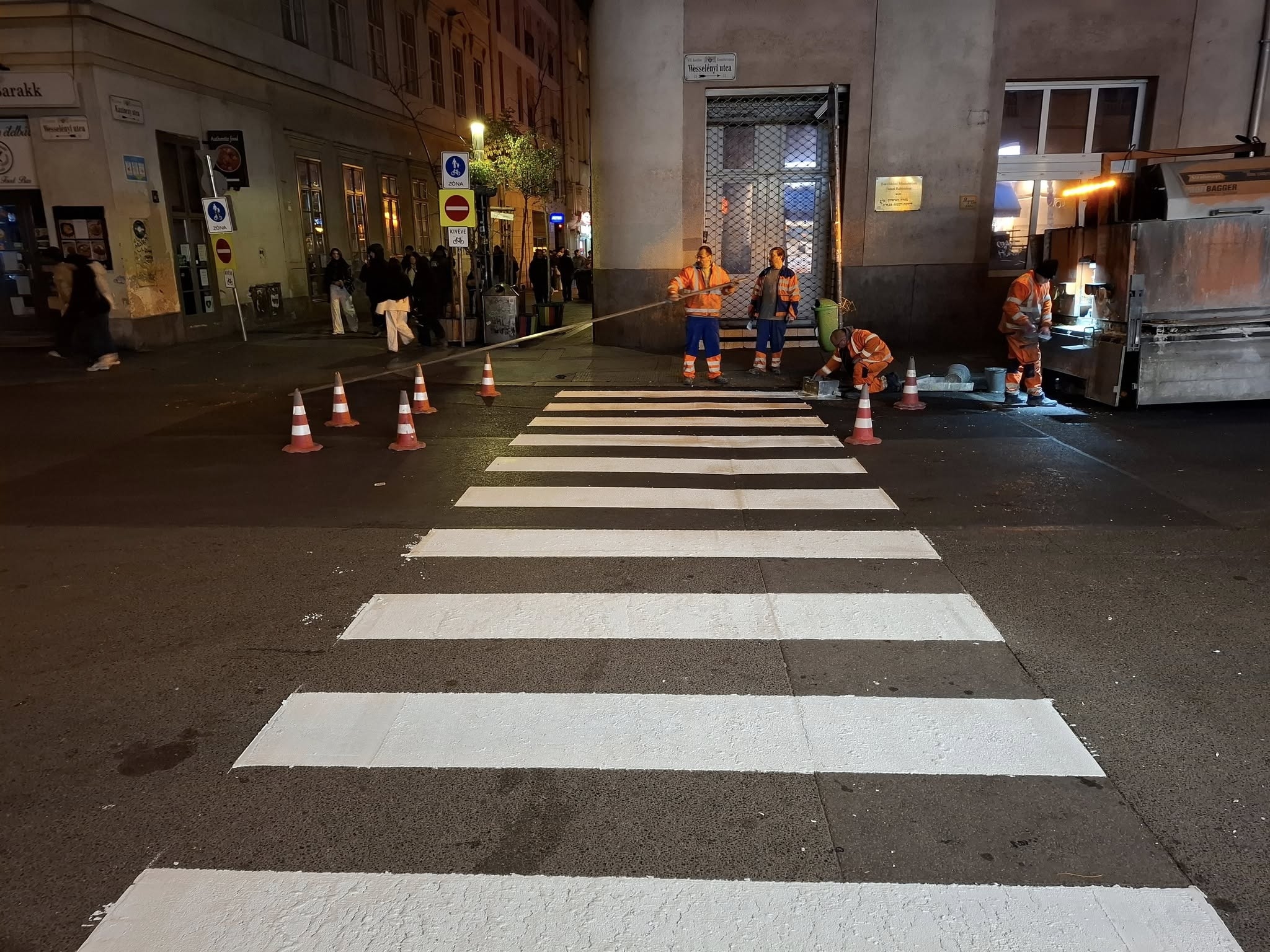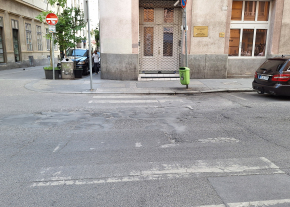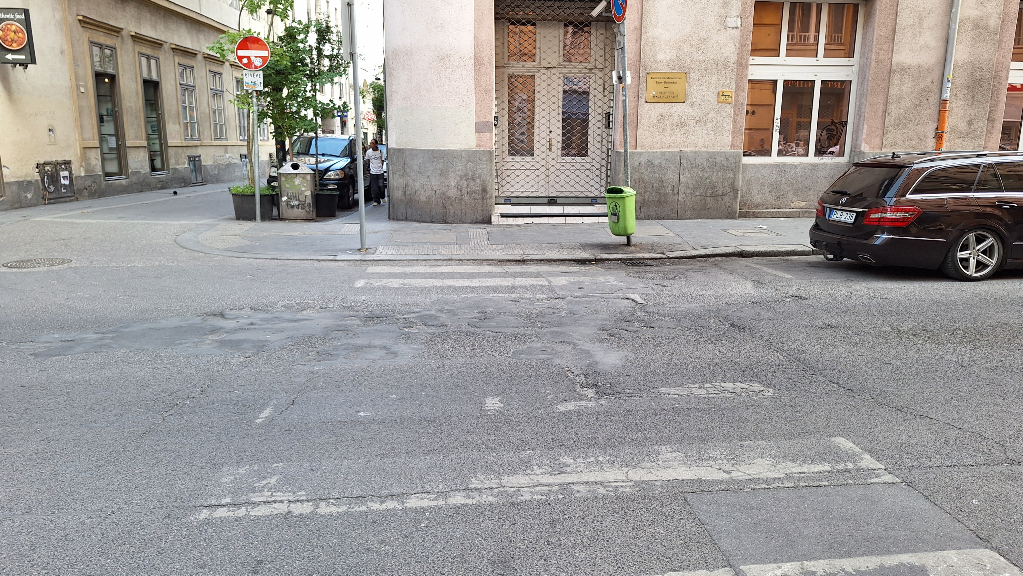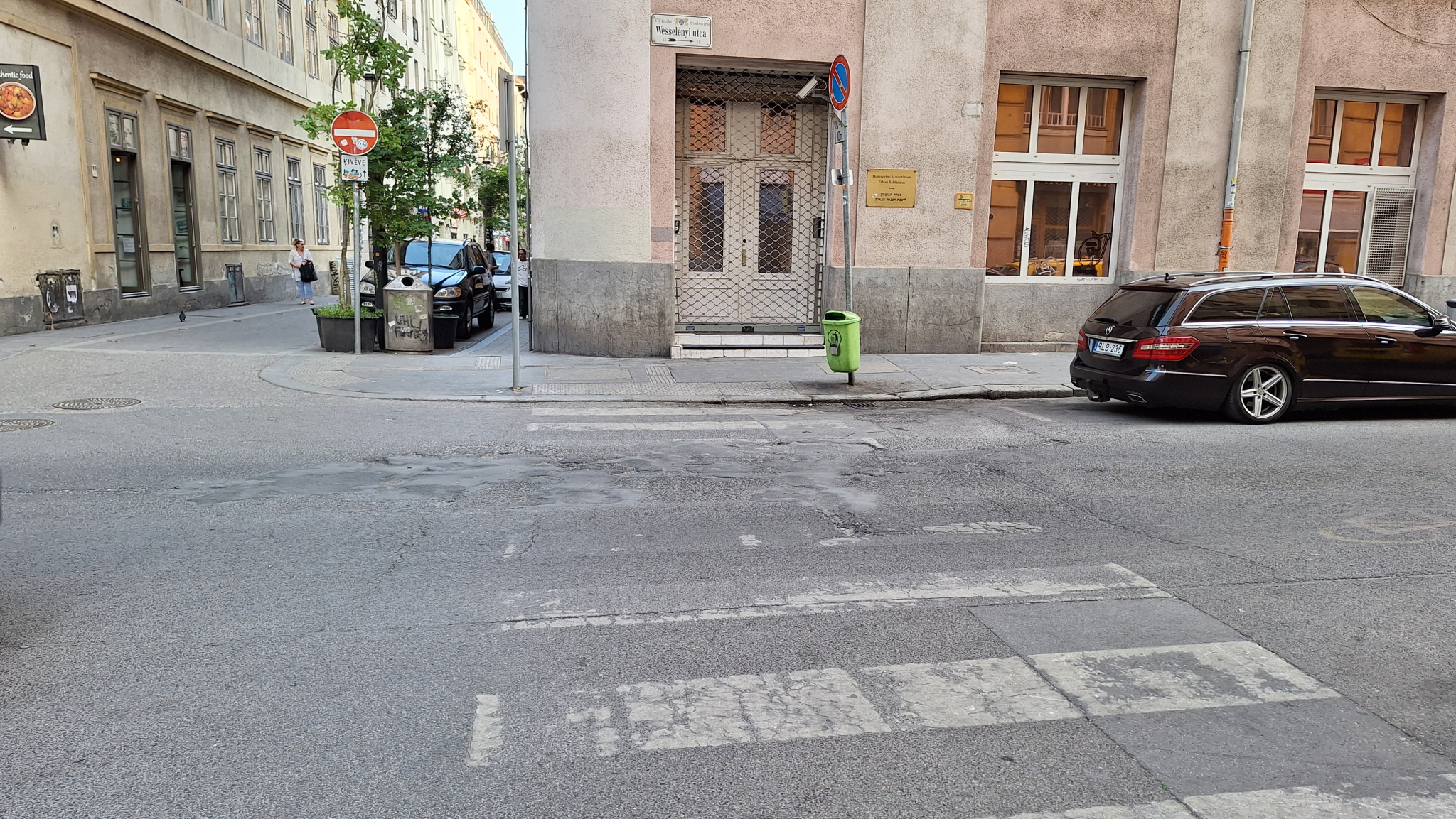 A Kazinczy és Wesselényi utca kereszteződésében lévő zebra útbrkolata finoman szólva siralmas állapotban van, és még a felfestés is lekopott.