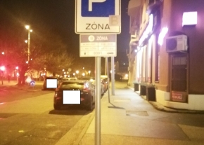 Szeretném tájékoztatni, hogy a "P zóna" közlekedési tábla még mindig el van hajolva, ráadásul már el is fordult, így a felette lévő kötelező haladási irányt jelző tábla rossz...