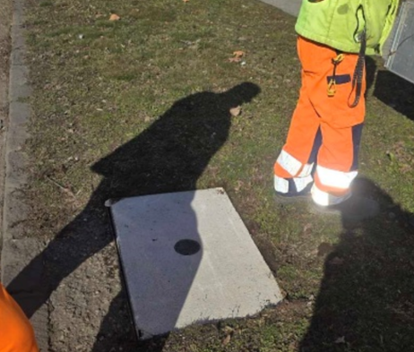Az V. kerület, Bajcsy-Zs.-út 12. előtti járdán a sérült, kopott fedlap cseréjét, javítását Társaságunk megrendelte.