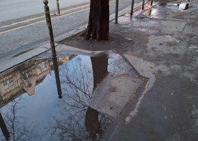 A Ferenc körút 30 előtt egy kisméretű fedlap megsüllyedt. Jelenleg az avar alatt bújik.