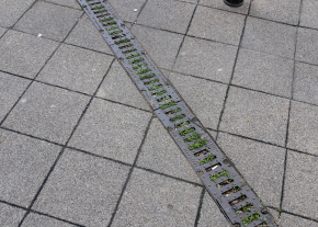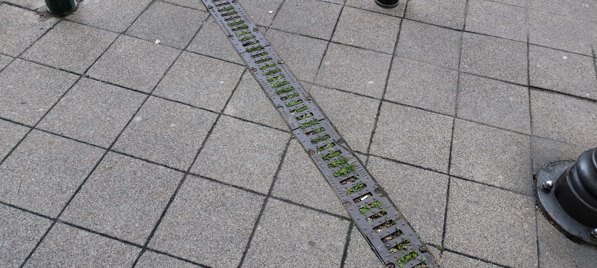 Szeméttel, földdel eldugult folyóka a Koszorú – Tavaszmező utca sarkán.