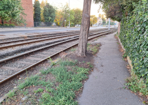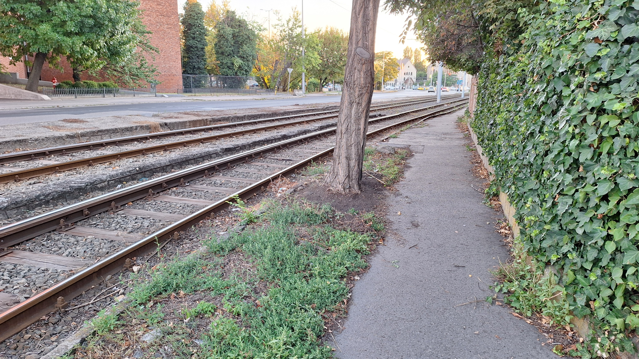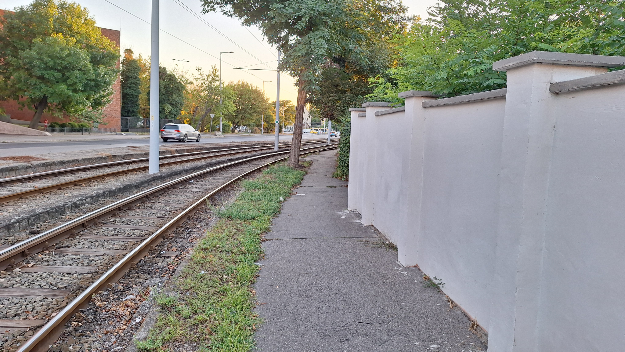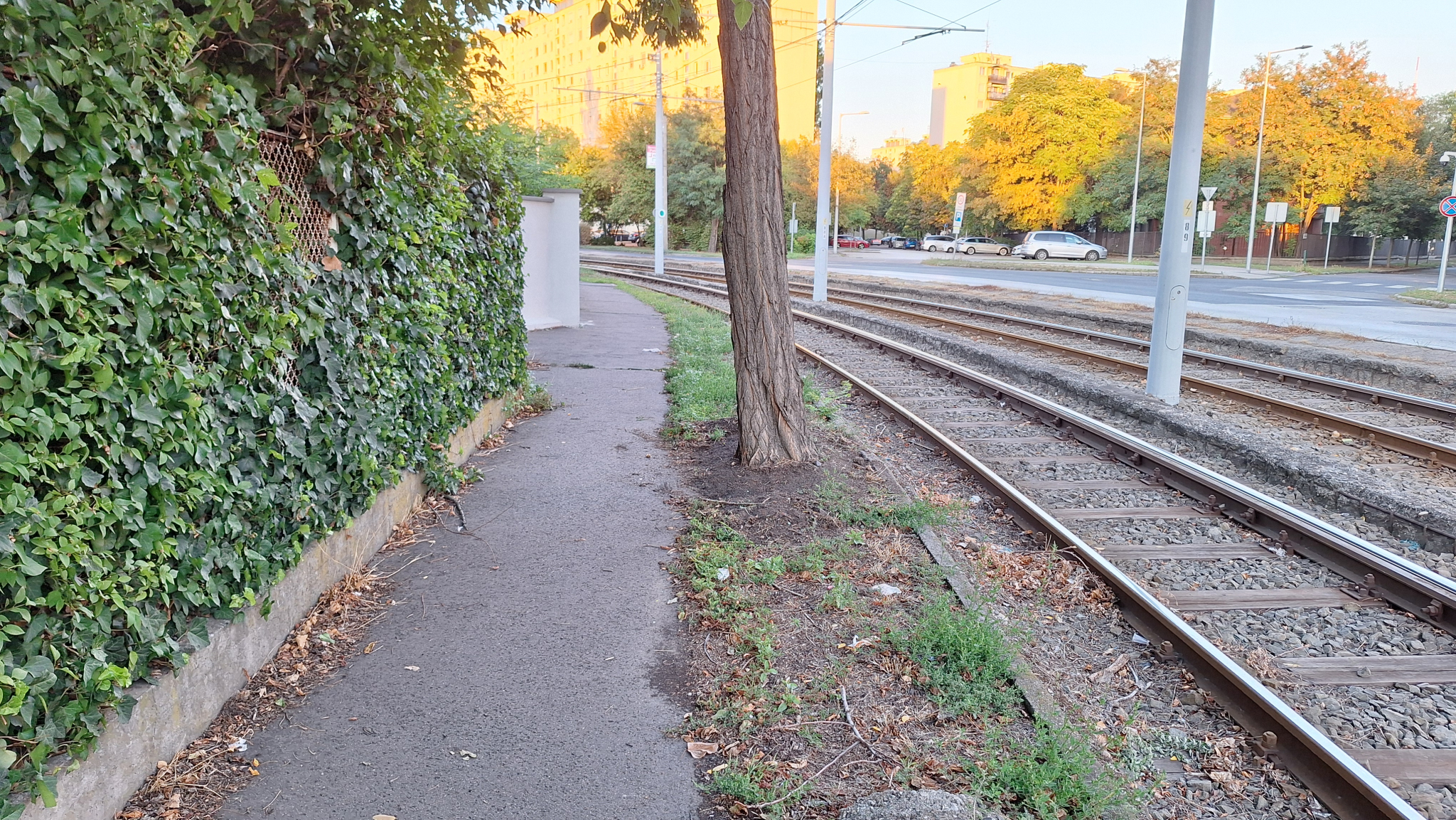 A Ceglédi úton a villamosvonal mentén lévő kerítés eléggé rossz állapotban van. Rozsdás, erősen mozog, és hamarosan kidől, amire egy fa is rásegít, és amely folyamatosan dönti ki a kerítést.